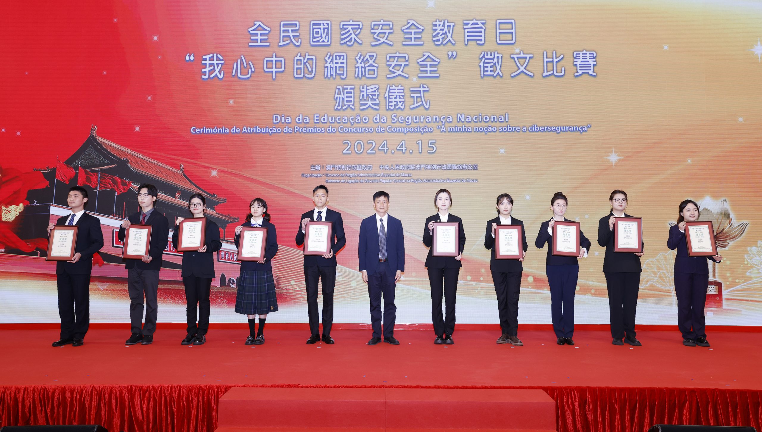 澳門共有來自8所高等院校、45所中學的22,000余名學生參與本次賽事。SPC共有26名學生參與了征文和短視頻的投稿。其中,由院生會宣傳部部長唐浩源率領的團隊,將一個“入侵攝像頭”的虛擬案例拍攝成微電影,以促觀看者提高警惕,保護個人隱私。該作品製作用心、演繹到位,最終獲得大專組三等獎。院生李紫軒則以《揚時代清風 築網絡安全》為題撰文,從自身童年、中學及當下對網絡與生活的不同體察出發,表達了對當今時代網絡安全與青年責任的思考,並獲得大專組優異獎。
